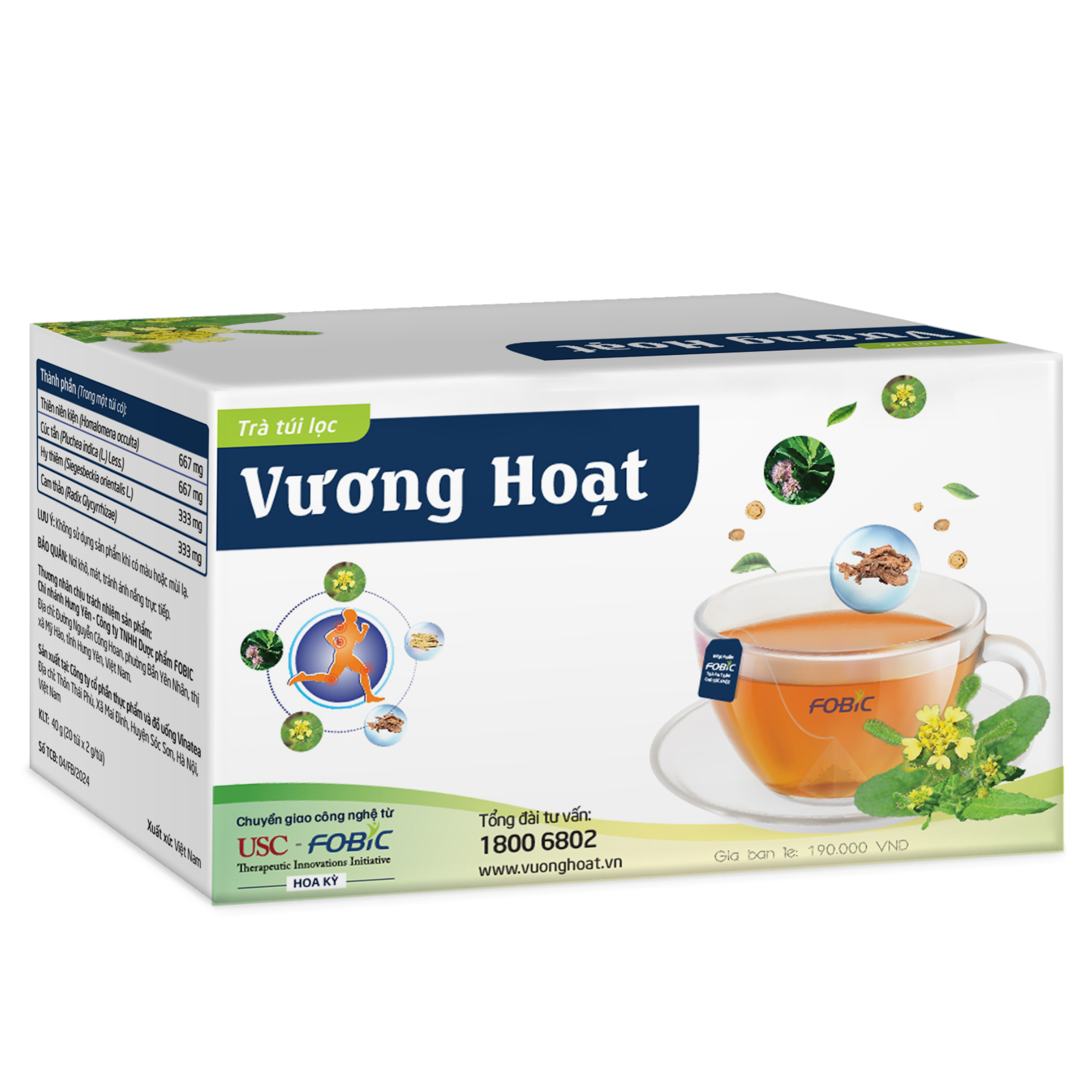 Trà thảo mộc Vương Hoạt là thức uống dành riêng người đau nhức xương khớp (đau lưng, mỏi gối, tê bì chân tay), viêm khớp, thoái hóa khớp, với sự kết hợp của các thảo dược quý: Thiên Niên Kiện, Hy Thiêm, Cúc Tần, Cam Thảo.